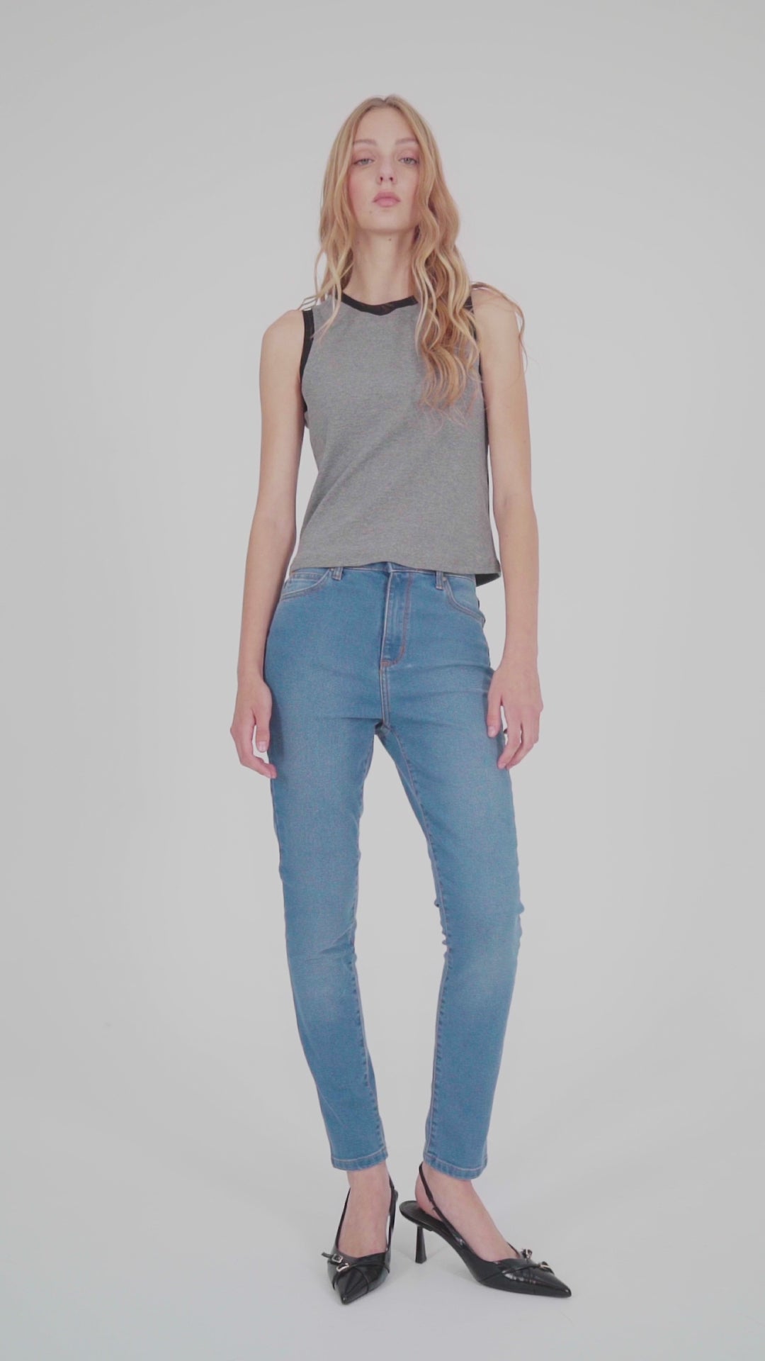 Pantalón chupín, confeccionado en DENIM 100% algodón, calce ajustado al cuerpo. Lavado medio, clásico.